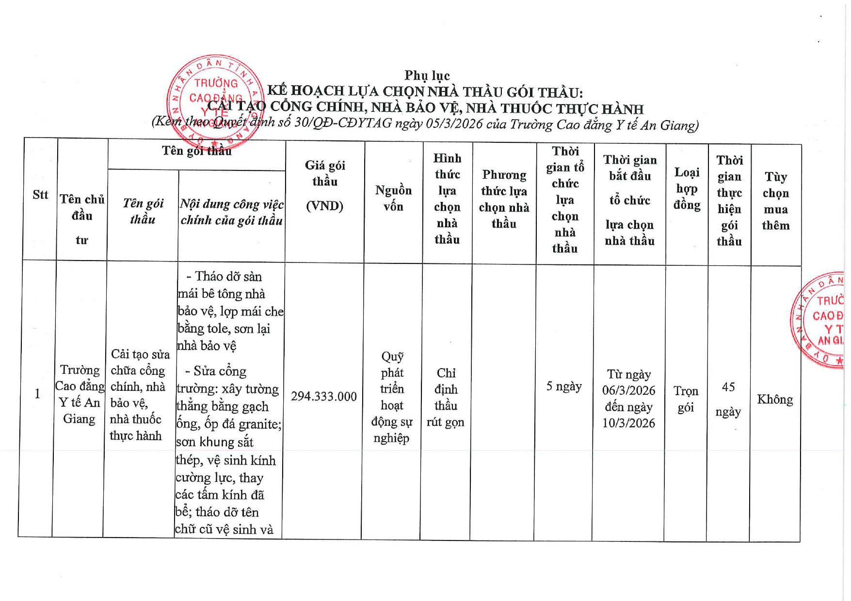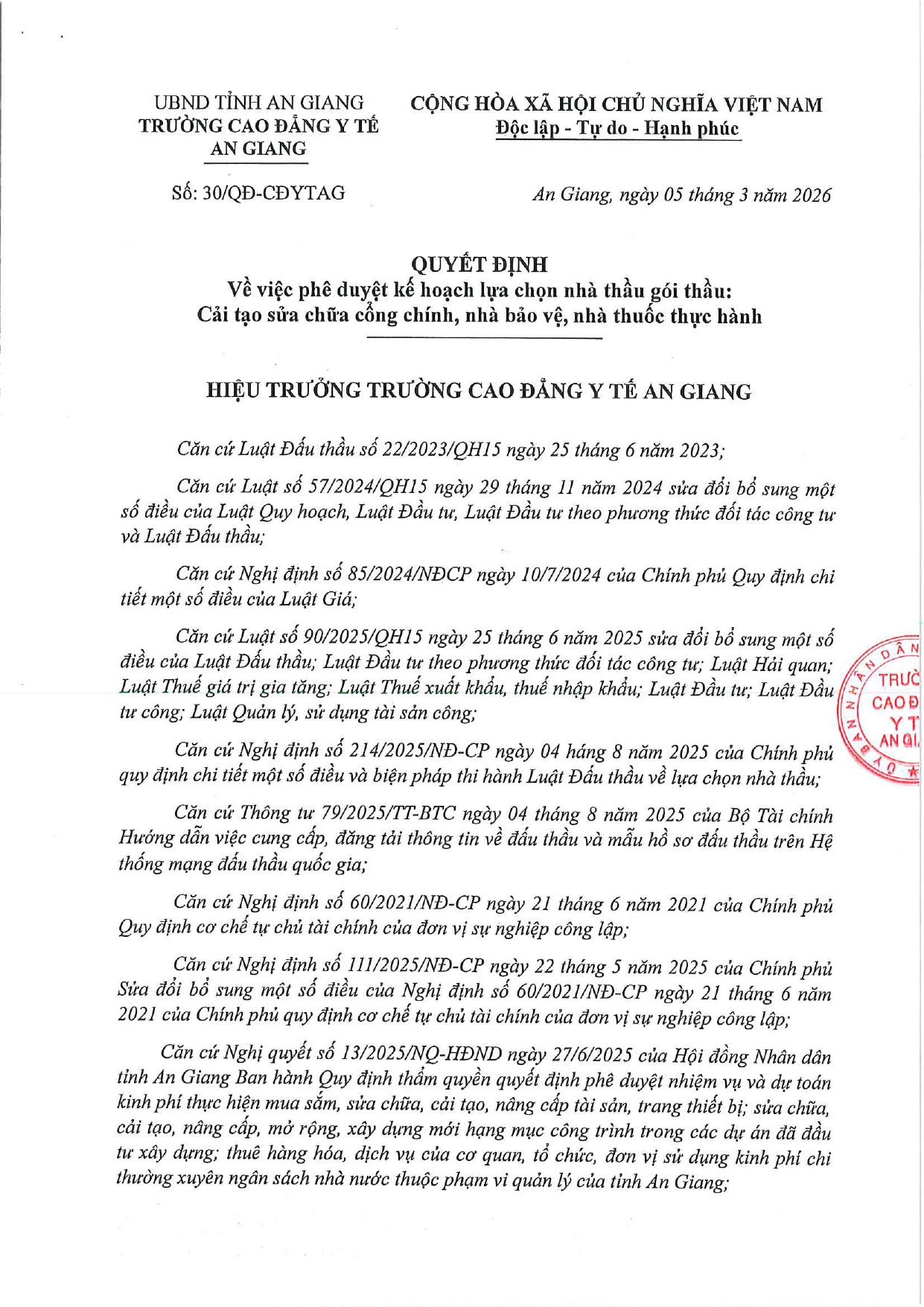 QUYẾT ĐỊNH Về việc phê duyệt dự toán gói thầu: Cải tạo sửa chữa cổng chính, nhà bảo vệ, nhà thuốc thực hành